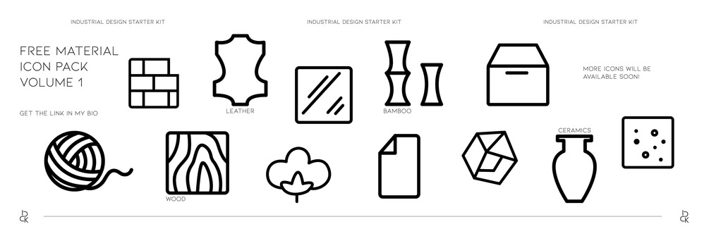 Material icons, minimal icons, design icons, product design resources, industrial design pack, UI icons, line icons, product design assets, icons for designers, SVG icons, moodboard assets, creative tools, freebie, Gumroad icons